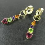 K18YG ロードライトガーネット ペリドット アメジスト シトリン 4Pストーン付 イエローゴールド クリップ式 イヤリング 9.6g J420
