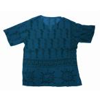 クルタ半袖 (S)青系 ユニセックス エスニック クルタシャツ 大き目 梵字 大き目 ゆったり アジアン ファッション
