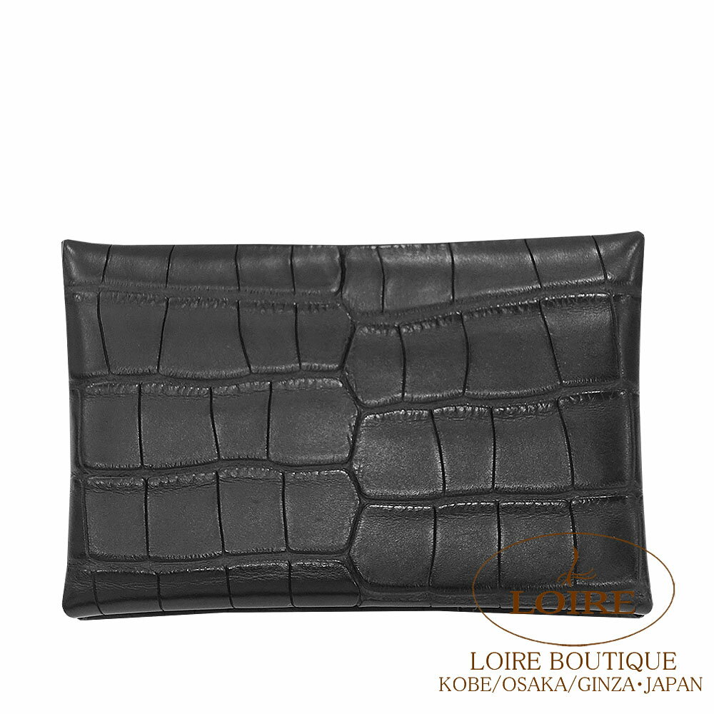 エルメス カルヴィ カードケース クロ アリゲーターマット シルバー金具 HERMES Calvi Card Case NOIR(89) Crocodile Alligator Matte Silver