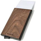 クレジットカードケース スキミング防止 スライド式 ステップ型 木目 磁気防止 自然木材 軽量 メンズ レディース MDM(ウォルナット)