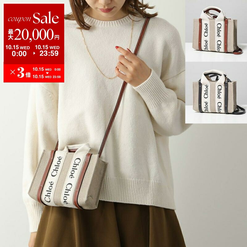 Chloe クロエ ショルダーバッグ WOODY MINI ウッディ ミニ CHC22AP237I26 レディース リネン キャンバス×レザー トート ハンドバッグ ロゴ 鞄 カラー2色