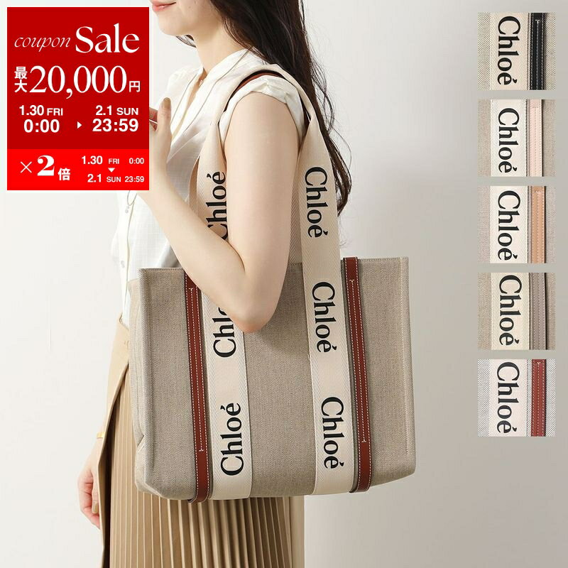 【最大2万円OFFクーポン対象・1/30~2/1限定】Chloe クロエ ショルダーバッグ WOODY MINI ウッディ ミニ CHC22AP237I26 レディース リネン キャンバス×レザー トート ハンドバッグ ロゴ 鞄 カラー2色