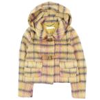 美品 シーバイクロエ SEE BY CHLOE ショート丈 ダッフルコート シャギー ジャケット アルパカ混 ウール チェック柄 40 M ベージュ系
