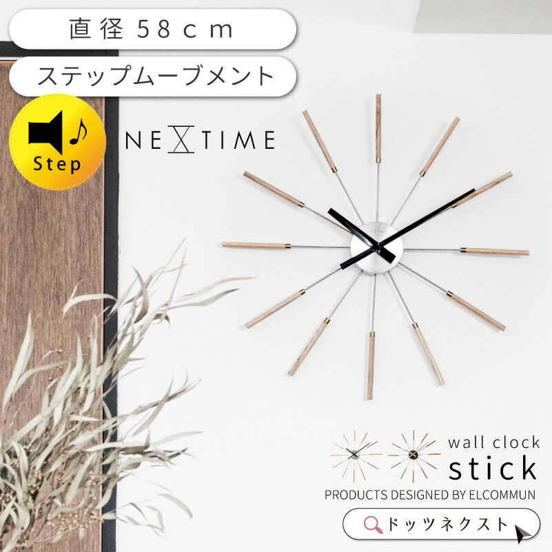【10%OFFクーポン★30日スタート】 壁掛け時計 おしゃれ NEXTIME ネクスタイム Radiant clock stick スティック NA BR 掛時計 掛け時計 ウォールクロック ステップムーブメント リビング ダイニング 書斎 オフィス NXT-J013 NXT-J014 引越 新生活