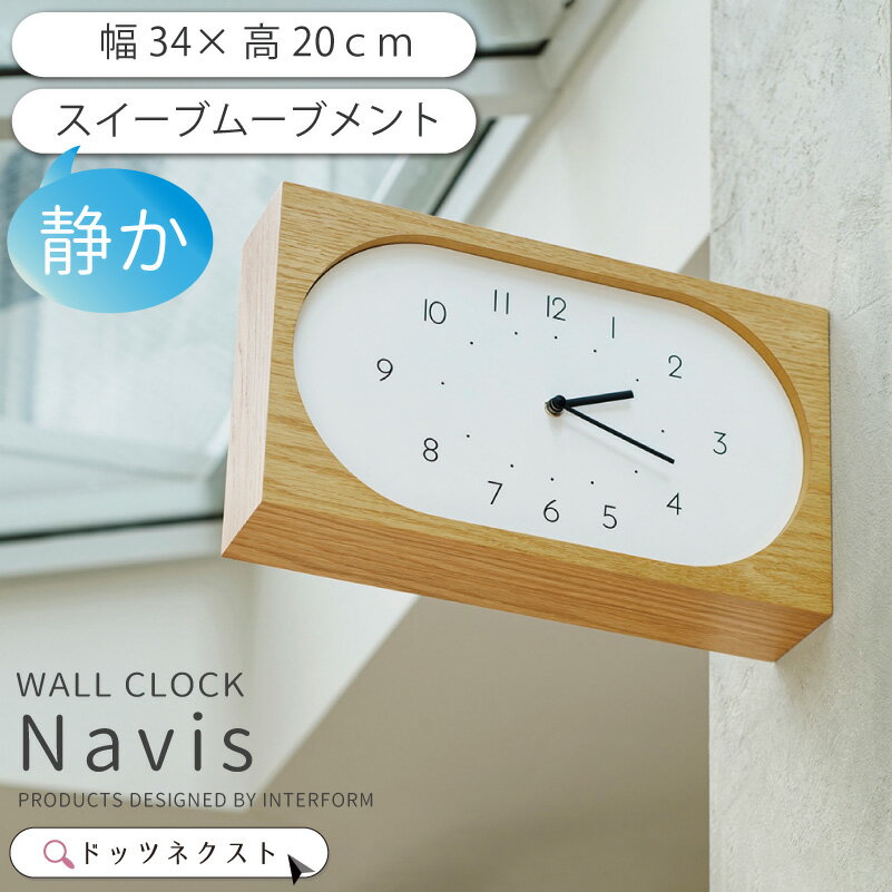 【10%OFFクーポン★30日スタート】 両面時計 木製 壁掛け時計 おしゃれ インターフォルム Navis ナーヴィス ウォールクロック スイーブムーブメント 連続秒針 デザイン 時計 ウォールクロック リビング ダイニング 寝室 ナチュラル 2510 引越 新生活