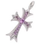クロムハーツ 18K TNY CRSF P SAP タイニーファットクロス PAVEサファイア ペンダント ゴールドネックレストップ 中古 SJ02