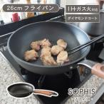 フライパン 26cm IH ih ガス 直火 ダイヤモンドコート 取っ手一体型 木目調 取っ手 焦げ付かない 長持ち 丈夫 熱伝導 時短 おしゃれ 北欧 モダン ソフィス 黒 BK
