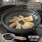 フライパン 28cm IH ih ガス 直火 ダイヤモンドコート 取っ手一体型 木目調 取っ手 焦げ付かない 長持ち 丈夫 熱伝導 時短 おしゃれ 北欧 モダン ソフィス 黒 BK