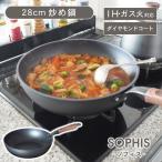 炒め鍋 28cm IH ih ガス 直火 ダイヤモンドコート 取っ手一体型 木目調 取っ手 焦げ付かない 長持ち 丈夫 時短 おしゃれ 北欧 モダン フライパン ソフィス 黒 BK