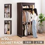 クローゼットハンガー ハンガーラック カバー付き 幅90cm 選べる2タイプ 上下棚タイプ 2段掛けタイプ 洋服 収納 洋服掛け 洋服ラック 衣類収納 収納家具