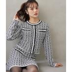 ニット セーター ゴールド釦ツイード風ニットカーディガン レディース