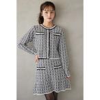 ワンピース サイドリボン付きツイードドッキングミニワンピース
