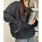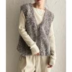 ベスト ジレ 深Vネックフェザーヤーンダブルジップシャギーニットベスト レディース