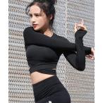 レディース 長袖クロップド丈クロスデザインヨガウェアトップス ピラティスウェア レディース