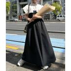 スカート Aラインナイロンボリュームタックフレアロングスカート