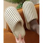 スリッパ 「男女兼用/滑り止め付き/起毛/軽量」あったかボア仕様。ストライプ柄×ナチュラルカラールームシューズ