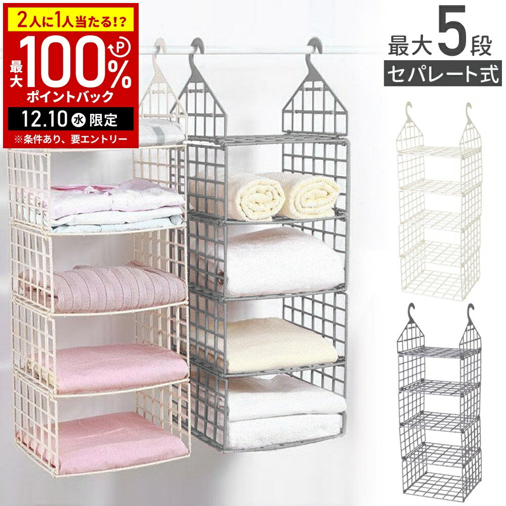 【5%OFFクーポン配布6日10時〜 利用条件あり】 吊り下げ収納 クローゼット 吊るす収納 衣類ラック 吊り下げ 収納 ラック 吊り下げ収納ラック かご 吊り下げラック クローゼット収納 衣類 ジョイント 1段 2段 3段 4段 5段 壁掛け収納