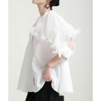 ブラウス シャツ アシメデザイン肩異素材BIG襟ブラウス レディース