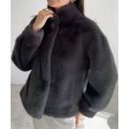 ジャケット テーラードジャケット エコファースタンドカラーショート丈コート レディース