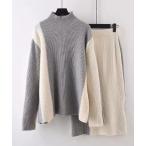バイカラーニット+ロングスカートセットアップ レディース
