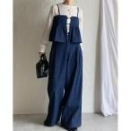 セットアップ ペプラムギャザーデニムキャミソールビスチェ&ワイドデニムパンツセットアップ レディース
