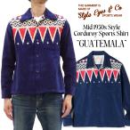 スタイルアイズ コーデュロイ スポーツシャツ SE29384 ガテマラ柄 東洋エンタープライズ オープンシャツ ネイビー 新品