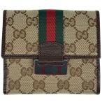 グッチ GUCCI ホースビット 二つ折り財布 Wホック 札入れ 小銭入れ シェリーライン ウェブ 二つ折り財布 GGキャンバス ブラウン レディース 中古