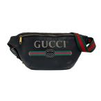 【GUCCI】 グッチ ウエストバッグ ウエストポーチ レザー ブラック ロゴプリント 中古 493869 ボディバッグ バッグ メンズ 質屋