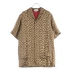 GUCCI グッチ 総柄Gランバス 裏地メッシュ オープンカラー半袖シャツ ブラウン