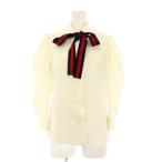グッチ GUCCI コットンポプリン ウェビングライン タイネック ブラウス シャツ 七分袖 36 白 453346 /KH レディース