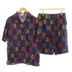 グッチ GUCCI GGプリント セットアップ シャツ 半袖 ショートパンツ ハーフパンツ シルク 絹 46 紺 ネイビー 694124 672698 /AN80