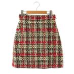 未使用品 グッチ GUCCI 494061 ツイードチェックスカート ミニ 台形 38 レッド /HK ■OS ■SH レディース