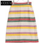 GUCCI グッチ 739409 マルチカラー リネン100 ボーダーミディスカート マルチカラー 36 スカート リネン レディース 中古