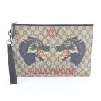 美品 グッチ GG スプリーム ダブル ウルフ 473904 レザー セカンドバッグ クラッチ ポーチ 通勤 ビジネス メンズ REE DU19-5