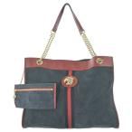 グッチ GUCCI ロゴ トートバッグ シェリーライン ウェブ トートバッグ デニム ブラック 73983 レディース 中古