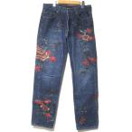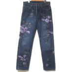 良品 GUCCI グッチ トムフォード期 名作 フラワーエンブロイダリー ボタンフライ デニムパンツ ジーンズ サイズ52 インディゴブルー メンズ 古着 中古