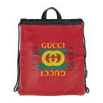 美品 グッチ リュック デイパック プリント ドローストリング 516639 赤系 レザー 2WAY ショルダー【本物保証】