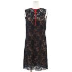 GUCCI グッチ ワンピース 2015年 フラワー フルレース リボン ノースリーブ コットン混 インナー取外可 ドレス レディース 38 黒 赤 伊製