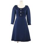 【美品】GUCCI グッチ ワンピース GG インターロッキング パール ボタン フリル Aライン ひざ丈 レディース 36 青 イタリア製