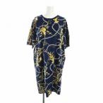グッチ GUCCI オールドグッチ ヴィンテージ ワンピース 半袖 ドルフィン チェーン 総柄 L 紺 ネイビー ■GY18 /MQ レディース