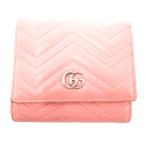 グッチ GUCCI GGマーモント 二つ折り財布 小銭入れ ロゴ ステッチ 598629・534563 ピンク /JS ■GY17 ☆AA★ レディース
