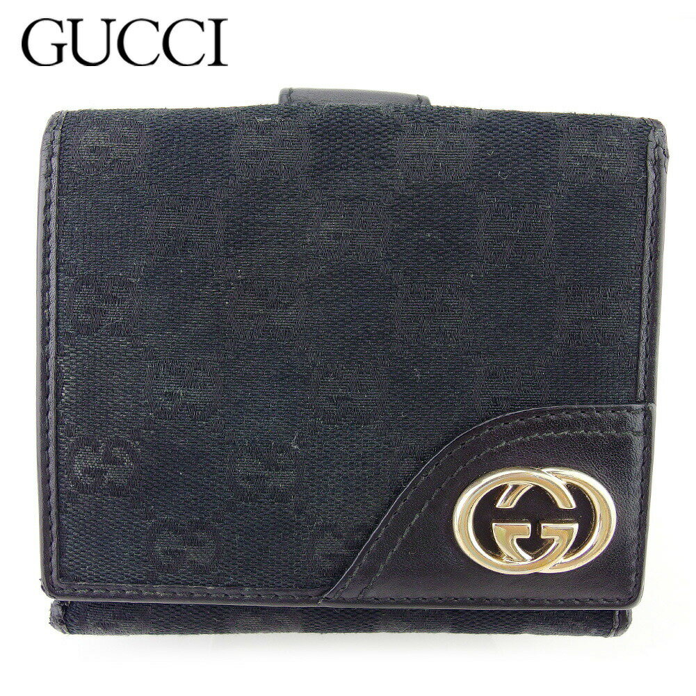 【Fashion Special Fair 30%OFFクーポン】グッチ GUCCI 二つ折り財布 GGキャンバス インターロッキングG ブラック ゴールド レディース 中古 ブランド ハイブランド ヴィンテージ