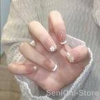ネイルチップ ショート シール ハート パール キラキラ かわいい 24枚入り グミシール付き花柄 つけ爪 ショートオーバル 着脱簡単 ファッション