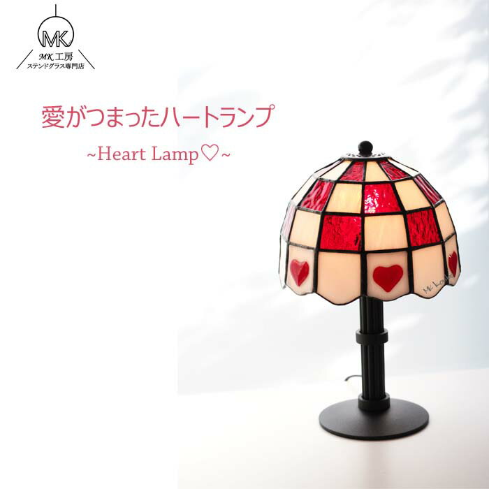 ステンドグラス ハート ランプ テーブルランプ 卓上ライト 照明 間接 インテリア照明 赤 白 シンプル ガラス インテリア ガラス細工 手作り ハンドメイド おしゃれ かわいい インテリア 贈り物 ギフト プレゼント 作家 雑貨 祝い 結婚祝い 出産祝い 新築祝い