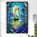 上級 フル ダイヤモンドアート キット ビーズ刺繍 ステンドグラス 海と船 ヨット 航海 パズルアート リハビリ 趣味 絵画 カラービーズ