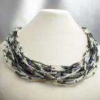 ネックレス ドイツ製 16連 グラスビーズ グレー 白 オーロラチューブ