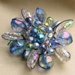 ブローチ ドイツ製 グラスビーズ ブルー お花