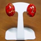 イヤリング ベネチアングラス イタリア製 オーバル 赤 金茶 ネジバネ式