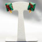 イヤリング ベネチアングラス イタリア製 角 グリーン・茶金 ベネチアンガラス クリップ式