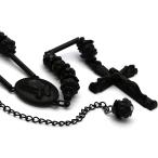 【並行輸入品】メンズ ヒップホップ 8mm 全パーツ黒トーン 32インチ グラスビーズチェーン ロザリオ 祈り手&キリスト 十字架ネックレス